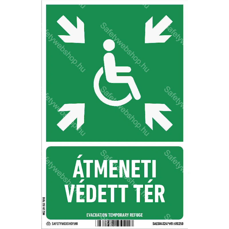 Átmeneti védett tér matrica / tábla (ISO 7010-E024 piktogram + felirat)