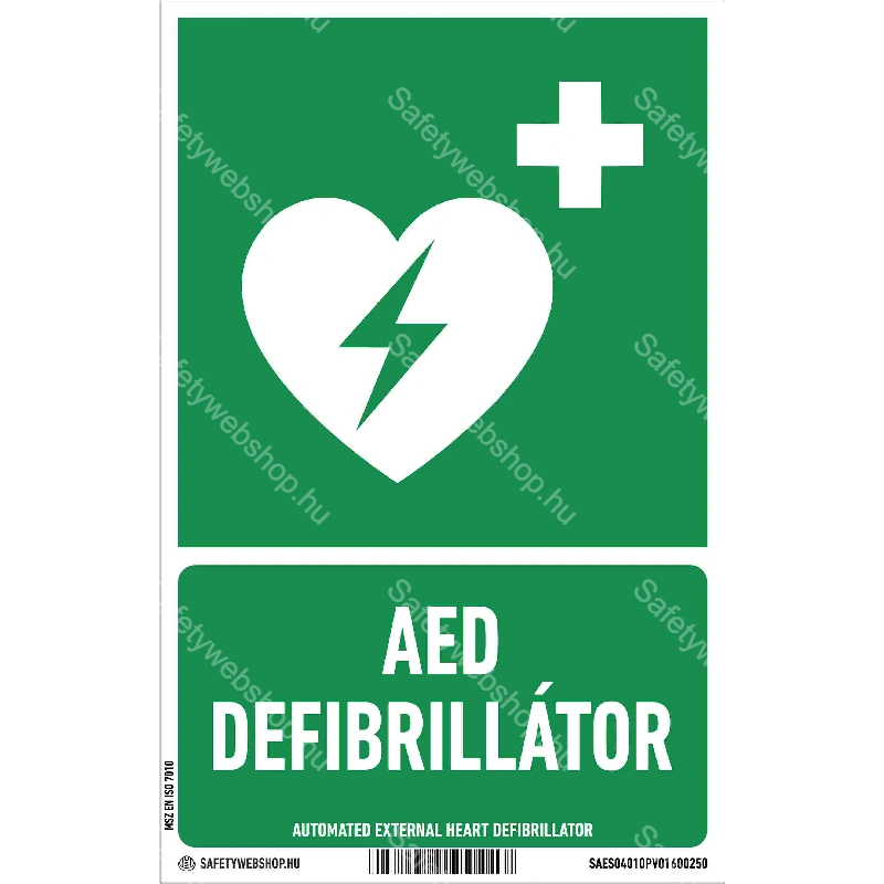 Defibrillátor matrica / tábla (ISO 7010-E010 piktogram + felirat)