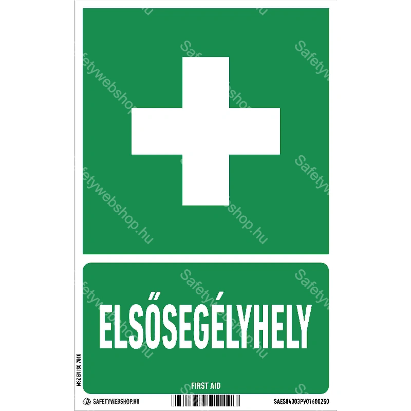 Elsősegélyhely matrica / tábla (ISO 7010-E003 piktogram + felirat)