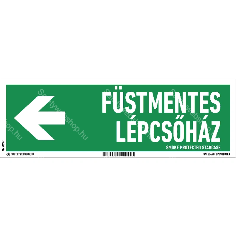 Kezdőlap » Füstmentes lépcsőház matrica / tábla (felirat + iránnyíl balra)