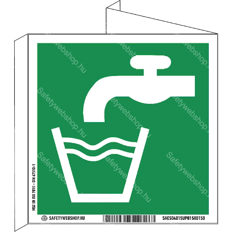 Ivóvíz utánvilágító tábla, faltól elálló, sátor alakú, kétoldalas (ISO 7010-E015 piktogram)