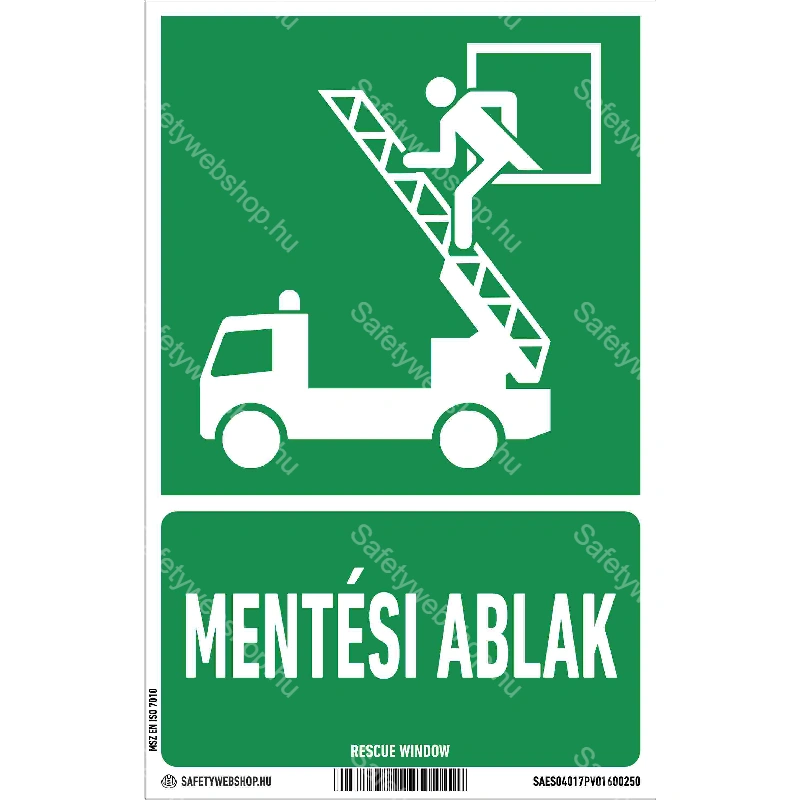 Kezdőlap » Mentési ablak matrica / tábla (ISO 7010-E017 piktogram + felirat)
