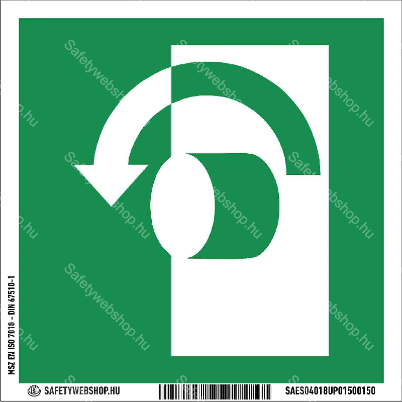 Kezdőlap » Nyitáshoz fordítsa balra (óramutató járásával ellentétesen)! matrica / tábla (ISO 7010-E018 piktogram)
