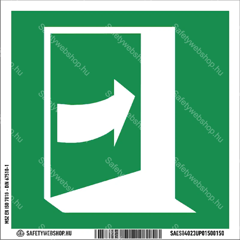 Nyitáshoz nyomja meg az ajtó jobb oldalát! matrica / tábla (ISO 7010-E023 piktogram)