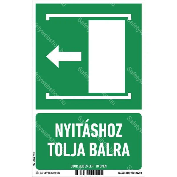 Kezdőlap » Nyitáshoz tolja balra! matrica / tábla (ISO 7010-E034 piktogram + felirat)
