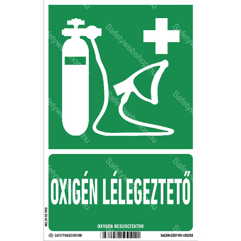 Oxigén lélegeztető matrica / tábla (ISO 7010-E028 piktogram + matrica)