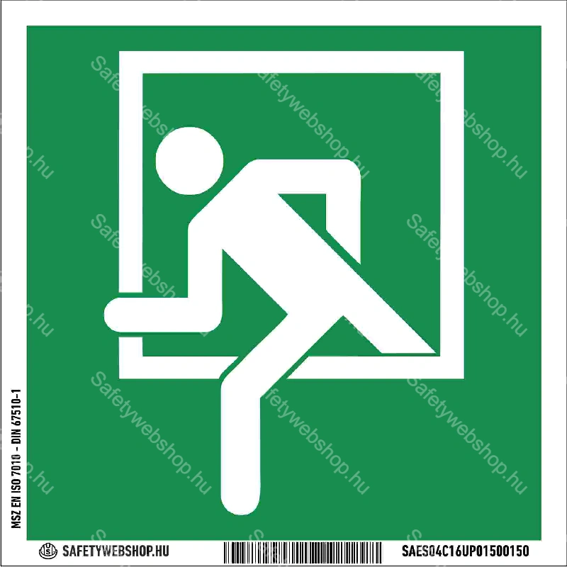 Vészkijárat (jobb) matrica / tábla (ISO 7010-E002 piktogram + felirat)