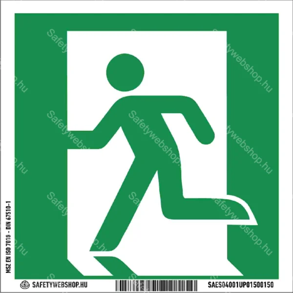 Vészkijárat (bal) matrica / tábla (ISO 7010-E001 piktogram)