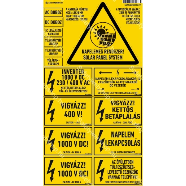 Napelem matricaszett / Vinyl öntapadó matrica / 200 mm x 375 mm