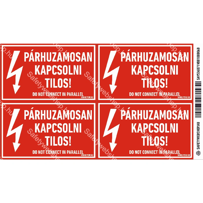 Kezdőlap » Párhuzamosan kapcsolni tilos! matrica / tábla
