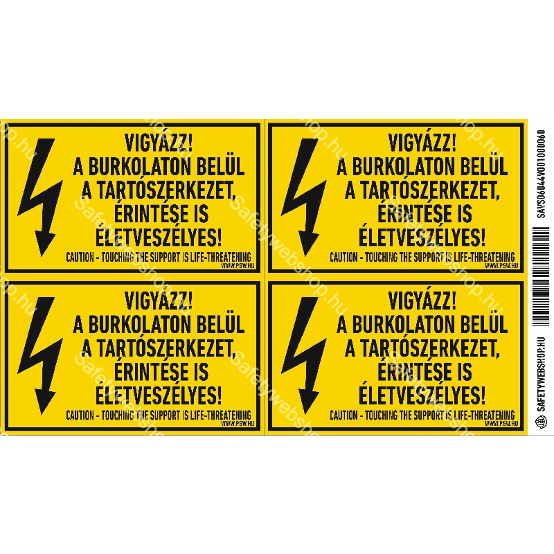 Vigyázz! A burkolaton belül a tartószerkezet érintése is életveszélyes! Matrica