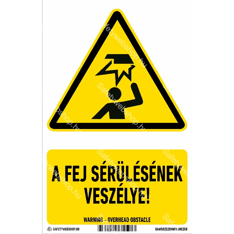Kezdőlap » A fej sérülésének veszélye! matrica / tábla (ISO 7010-W020 piktogram + felirat)