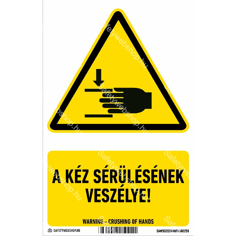 Kezdőlap » A kéz sérülésének veszélye! matrica / tábla (ISO 7010-W024 piktogram + felirat)