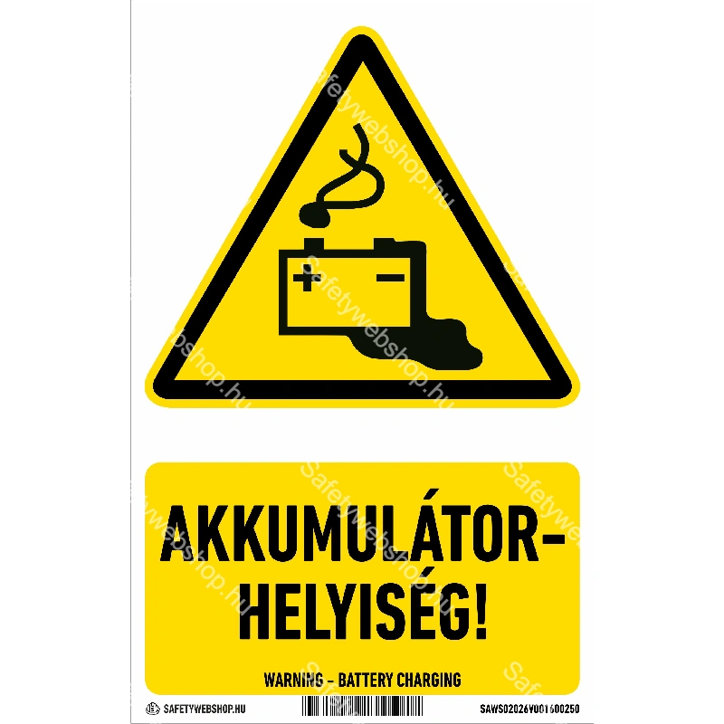 Kezdőlap » Akkumulátorhelyiség! matrica / tábla (ISO 7010-W026 piktogram + felirat)