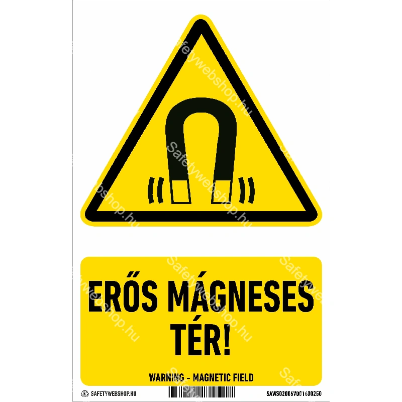 Erős mágneses tér! matrica / tábla (ISO 7010-W006 piktogram + felirat)
