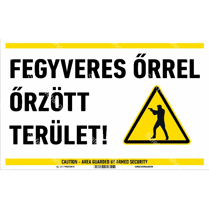 Kezdőlap » Fegyveres őrrel őrzött terület! matrica / tábla (piktogram + felirat)