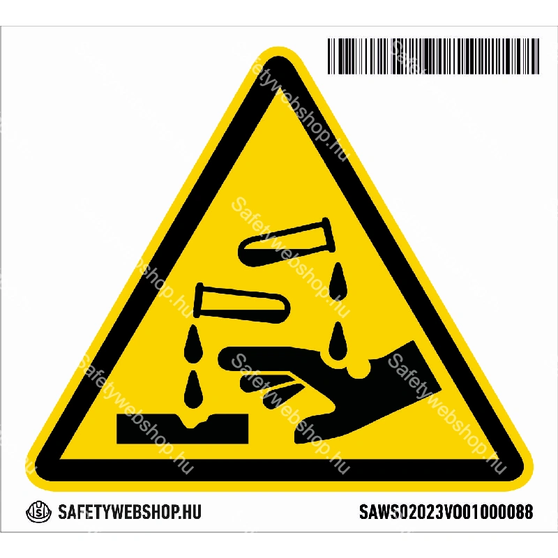 Kezdőlap » Maró anyag! matrica (ISO 7010-W023 piktogram)
