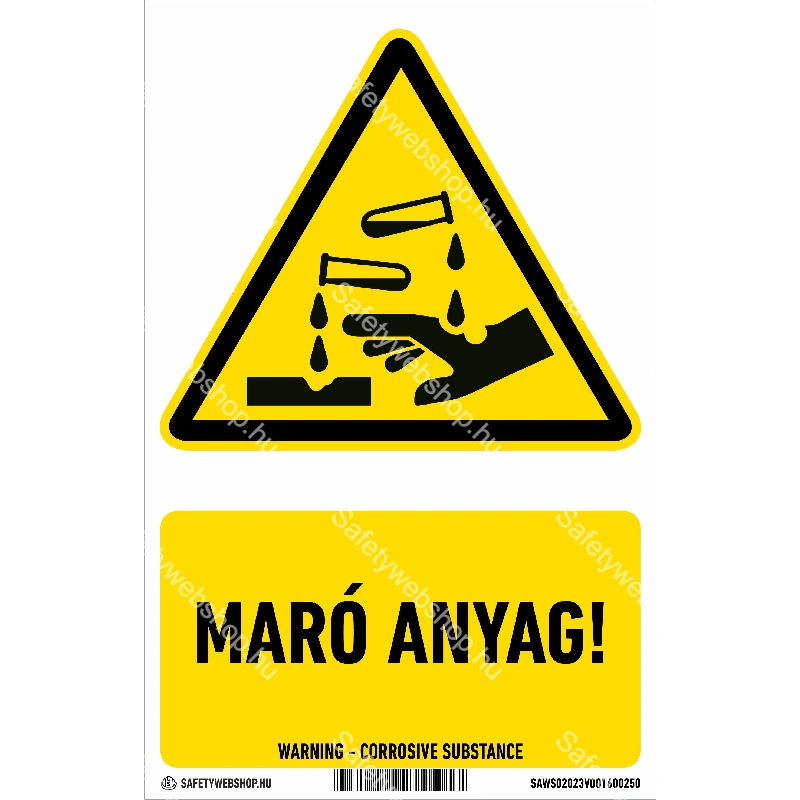 Kezdőlap » Maró anyag! matrica / tábla (ISO 7010-W023 piktogram + felirat)