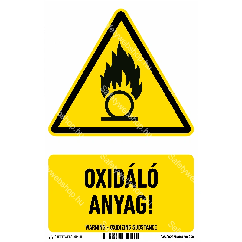 Kezdőlap » Oxidáló anyag! matrica / tábla (ISO 7010-W028 piktogram + felirat)