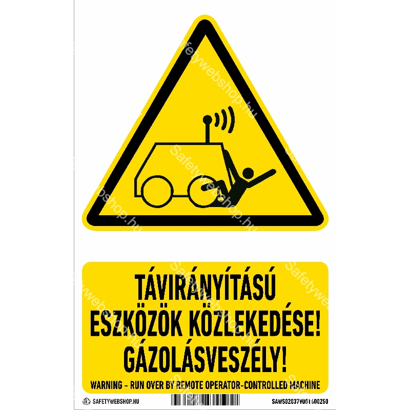 Kezdőlap » Távirányítású eszközök közlekedése, gázolásveszély! matrica / tábla (ISO 7010-W037 piktogram + felirat)