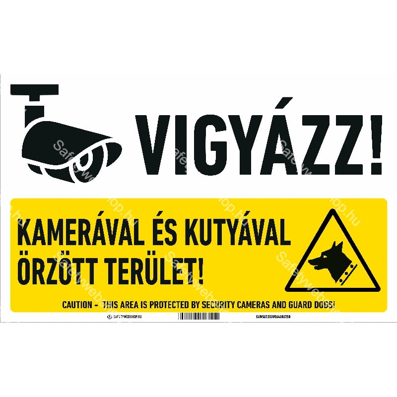 Vigyázz! Kamerával és kutyával őrzött terület! matrica / tábla (piktogram + felirat)