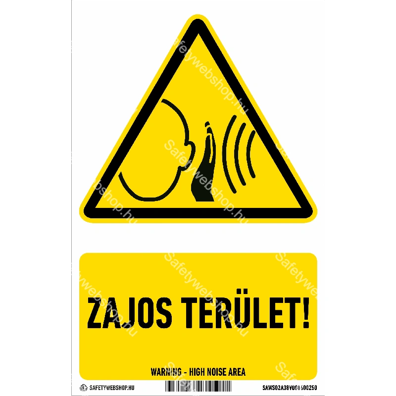 Zajos terület! matrica / tábla (ISO 7010-W038 piktogram + felirat)
