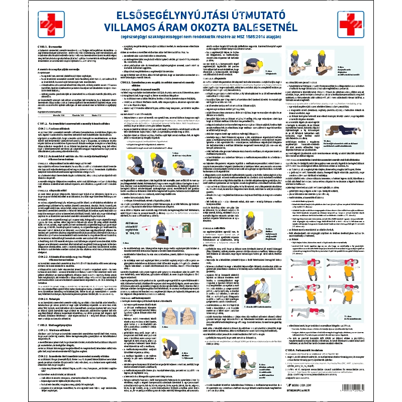 Elsősegélynyújtási útmutató villamos áram okozta balesetnél MSZ1585:2016 műanyag plakát