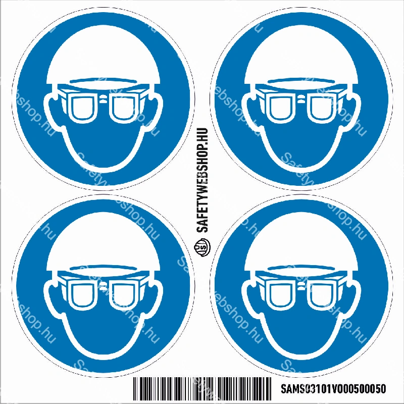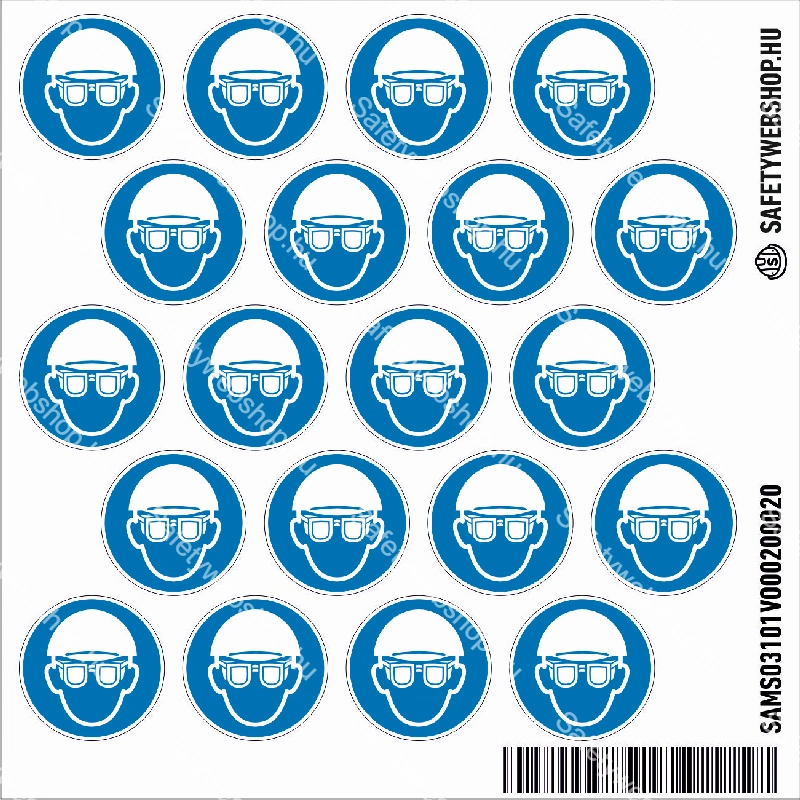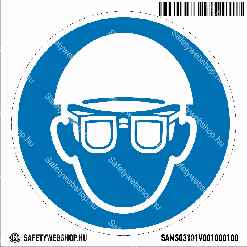 Fejvédő és védőszemüveg használata kötelező! matrica (piktogram)