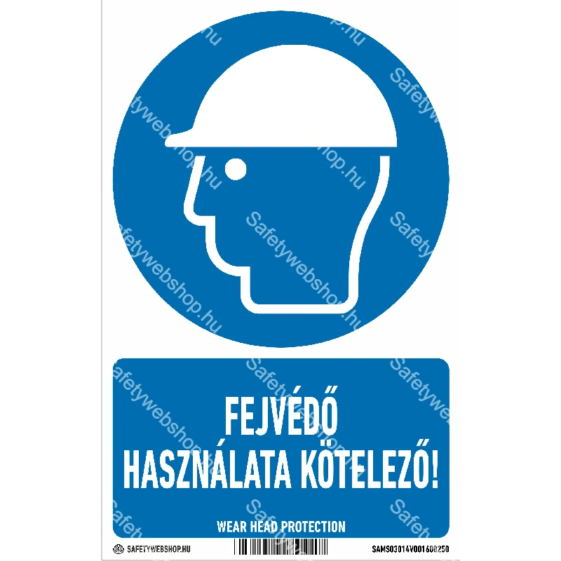 Kezdőlap » Fejvédő használata kötelező! matrica / tábla (ISO 7010-M014 piktogram + felirat)