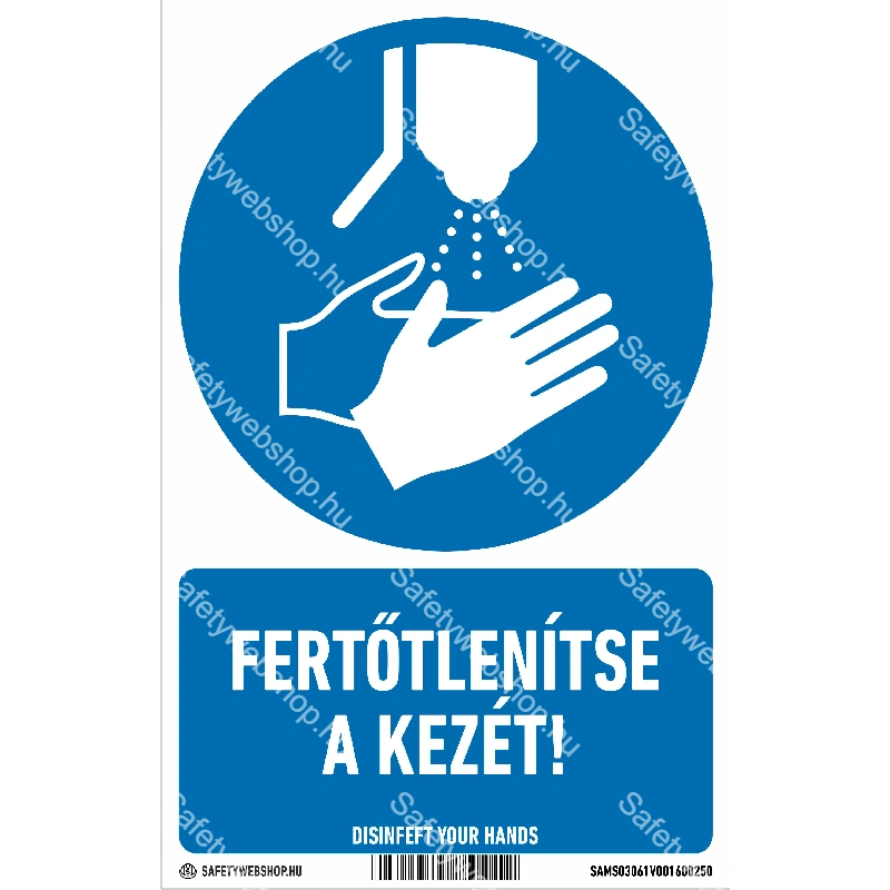 Kezdőlap » Fertőtlenítse a kezét! matrica / tábla (ISO 7010-M061 piktogram + felirat)