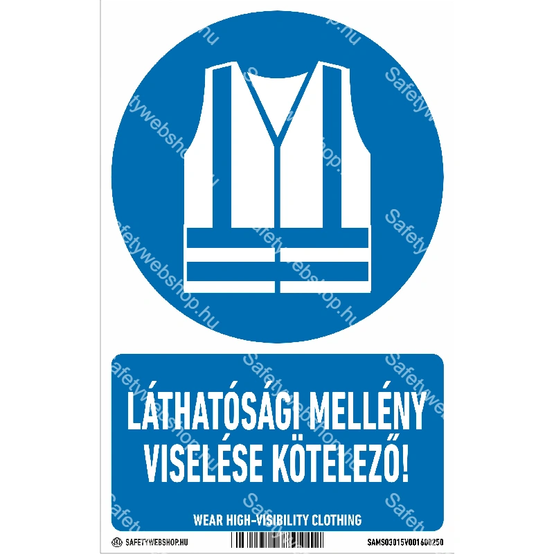 Láthatósági mellény viselése kötelező! matrica / tábla (ISO 7010-M015 piktogram + felirat)