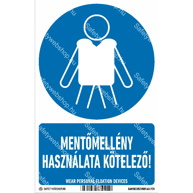 Kezdőlap » Mentőmellény használata kötelező! matrica / tábla (ISO 7010-M053 piktogram + felirat)