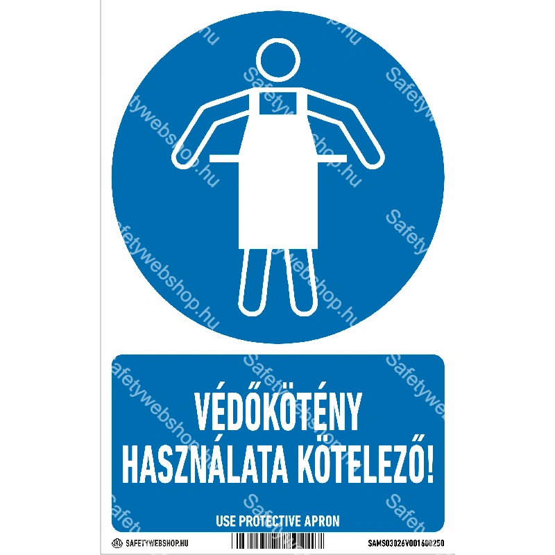 Kezdőlap » Védőkötény használata kötelező! matrica / tábla (ISO 7010-M026 piktogram + felirat)