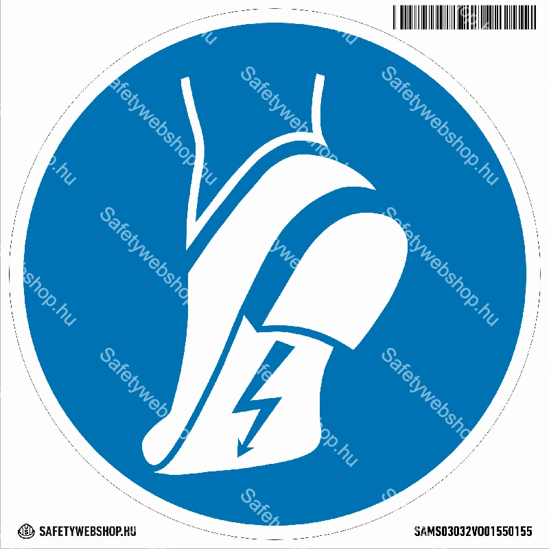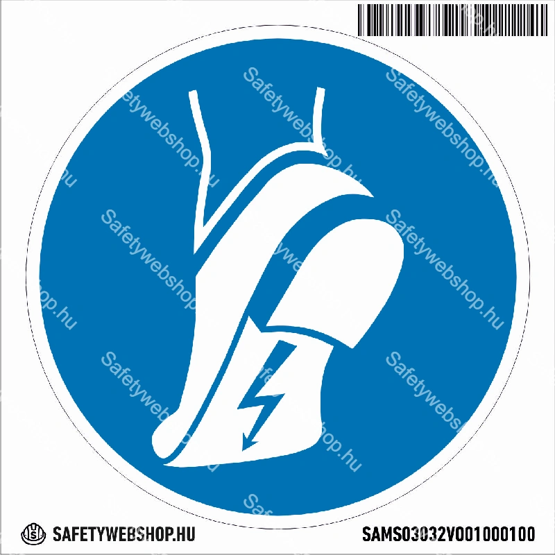Kezdőlap » Vezetőtalpú cipő használata kötelező! matrica (ISO 7010-M032 piktogram)