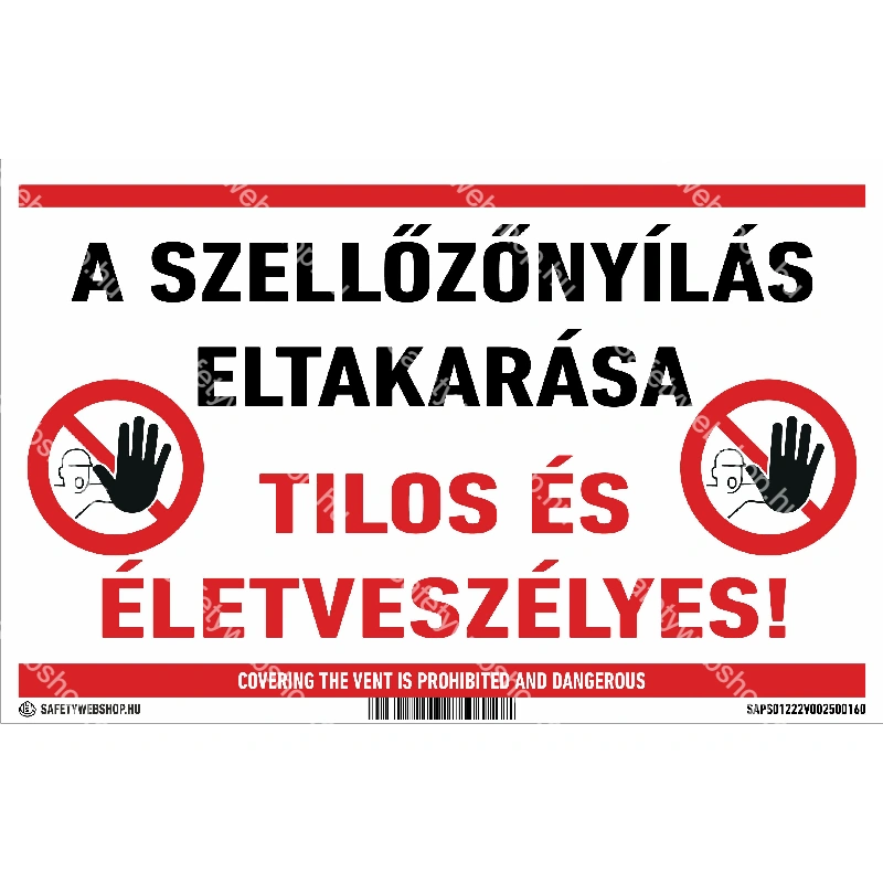 Kezdőlap » A szellőzőnyílás eltakarása tilos és életveszélyes! matrica / tábla (felirat)