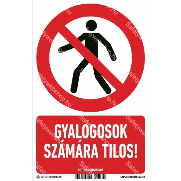 Kezdőlap » Gyalogosok számára tilos! álló matrica / tábla (ISO 7010-P004 piktogram + felirat)