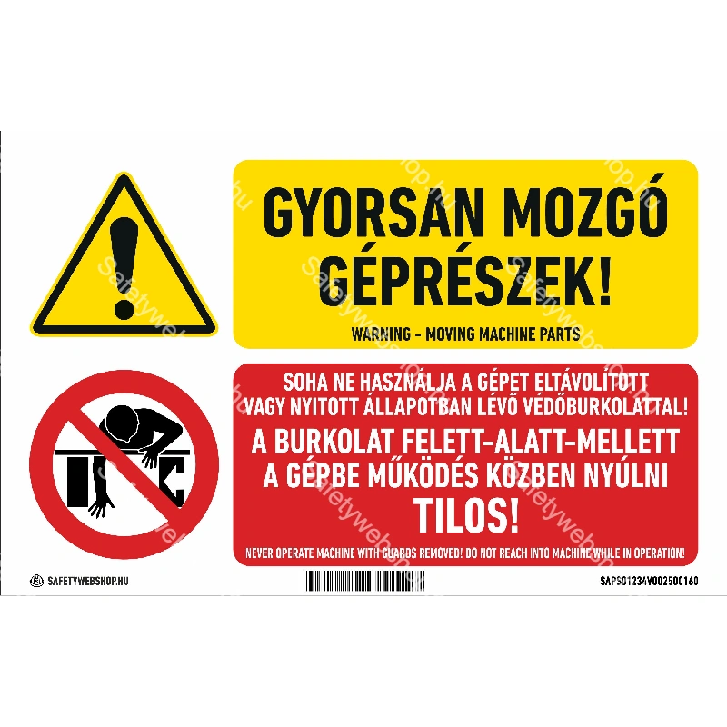 Gyorsan mozgó géprészek! Soha ne használja a gépet… matrica / tábla (piktogram + felirat)