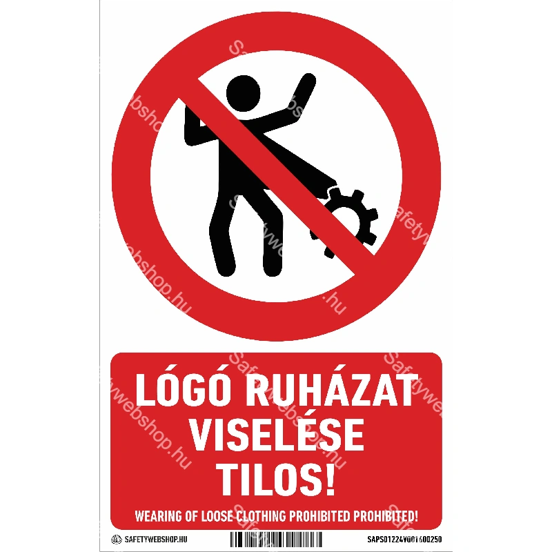 Kezdőlap » Lógó ruházat viselése tilos! álló matrica / tábla (piktogram + felirat)