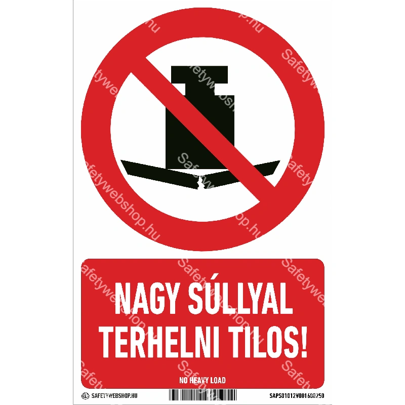 Kezdőlap » Nagy súllyal terhelni tilos! matrica / tábla (ISO 7010-P012 piktogram + felirat)