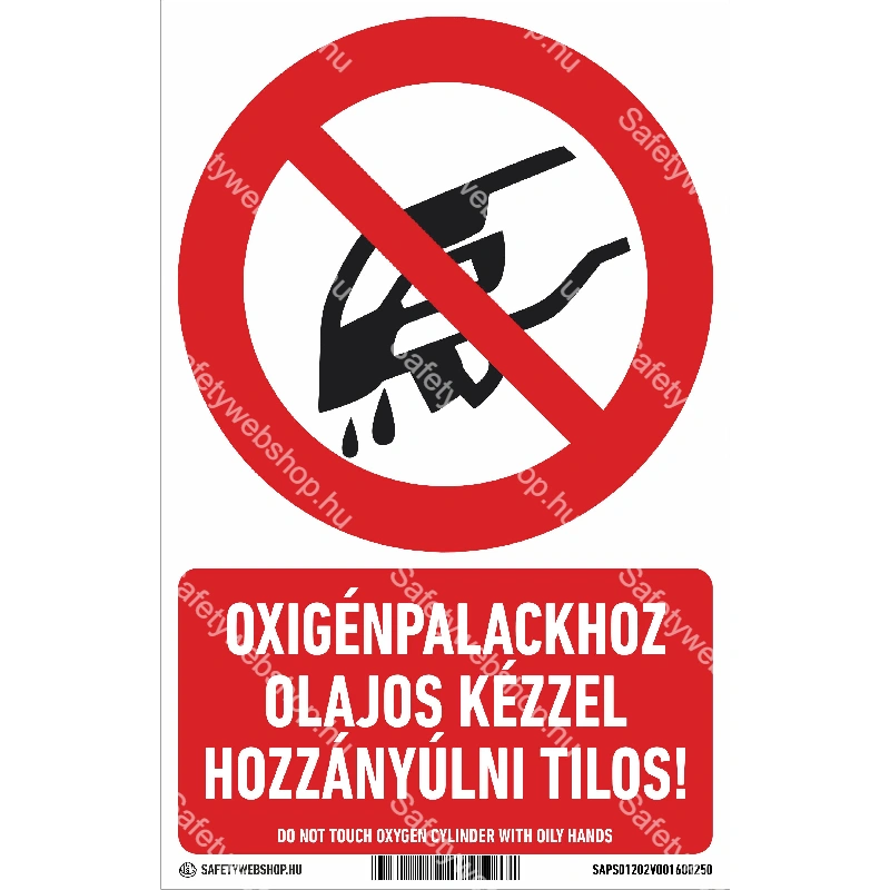 Kezdőlap » Oxigénpalackhoz olajos kézzel hozzányúlni tilos! álló matrica / tábla (piktogram + felirat)