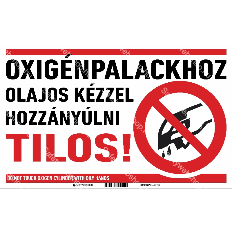 Kezdőlap » Oxigénpalackhoz olajos kézzel hozzányúlni tilos! fekvő matrica / tábla (piktogram + felirat)