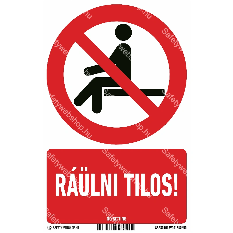 Ráülni tilos! matrica / tábla (ISO 7010-P018 piktogram + felirat)