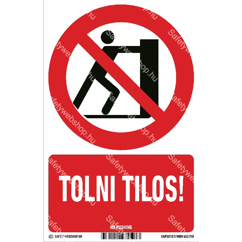 Kezdőlap » Tolni tilos! matrica / tábla (ISO 7010-P017 piktogram + felirat)