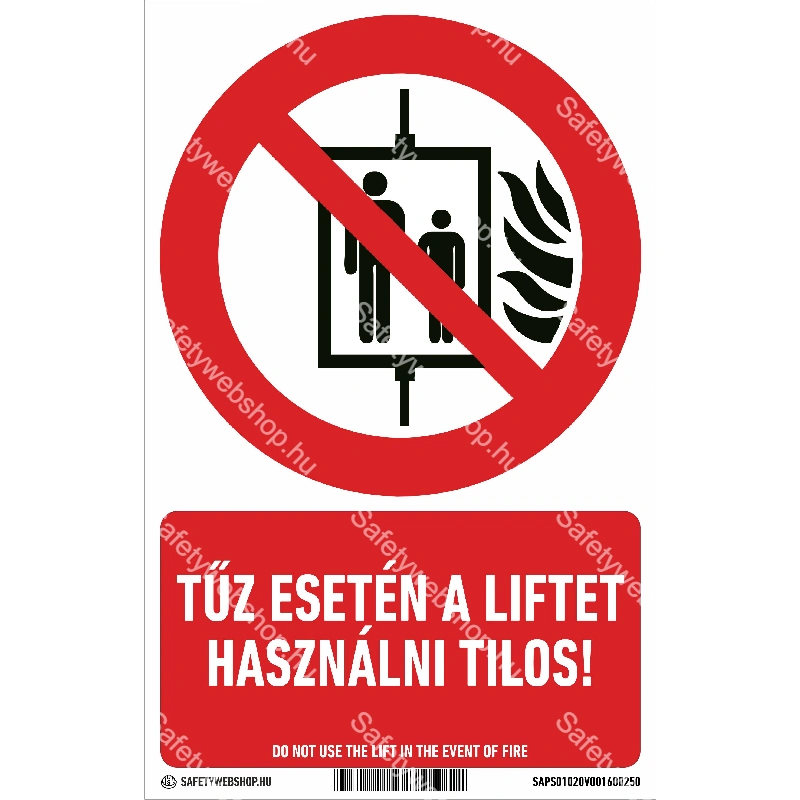 Kezdőlap » Tűz esetén a liftet használni tilos! matrica / tábla (ISO 7010-P020 piktogram + felirat)