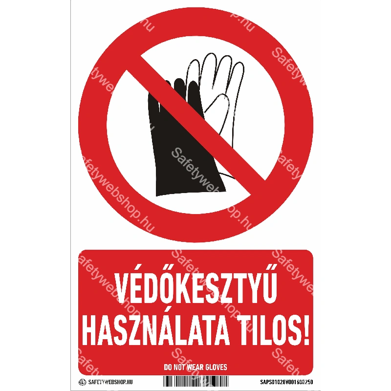 Kezdőlap » Védőkesztyű használata tilos! matrica / tábla (ISO 7010-P028 piktogram + felirat)