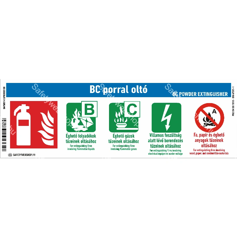 Kezdőlap » BC porral oltó készülék matrica / tábla (piktogram + felirat)