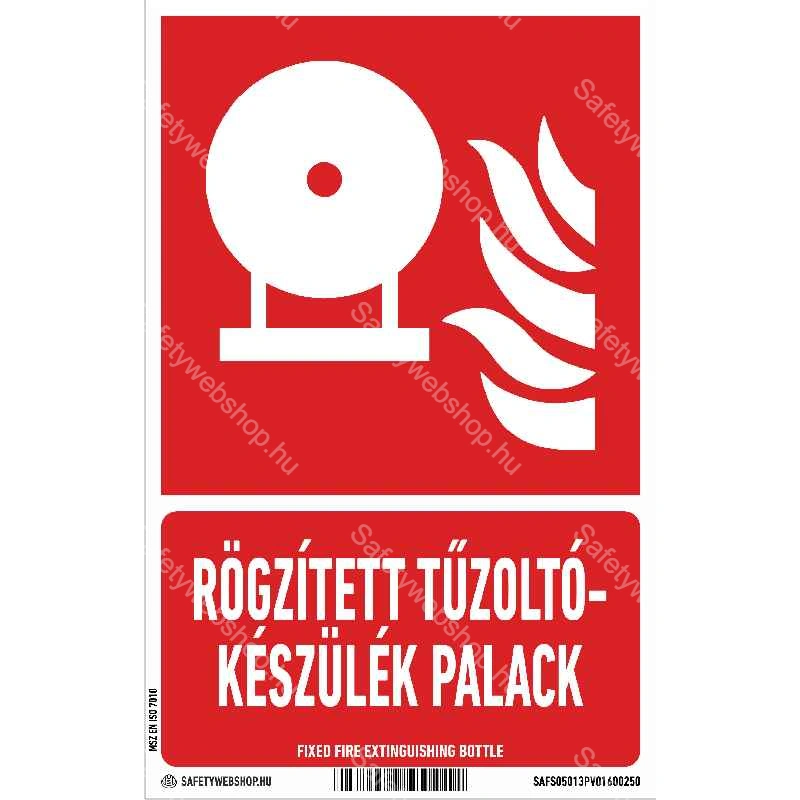 Kezdőlap » Rögzített tűzoltókészülék palack matrica / tábla (ISO 7010-F013 piktogram + felirat)