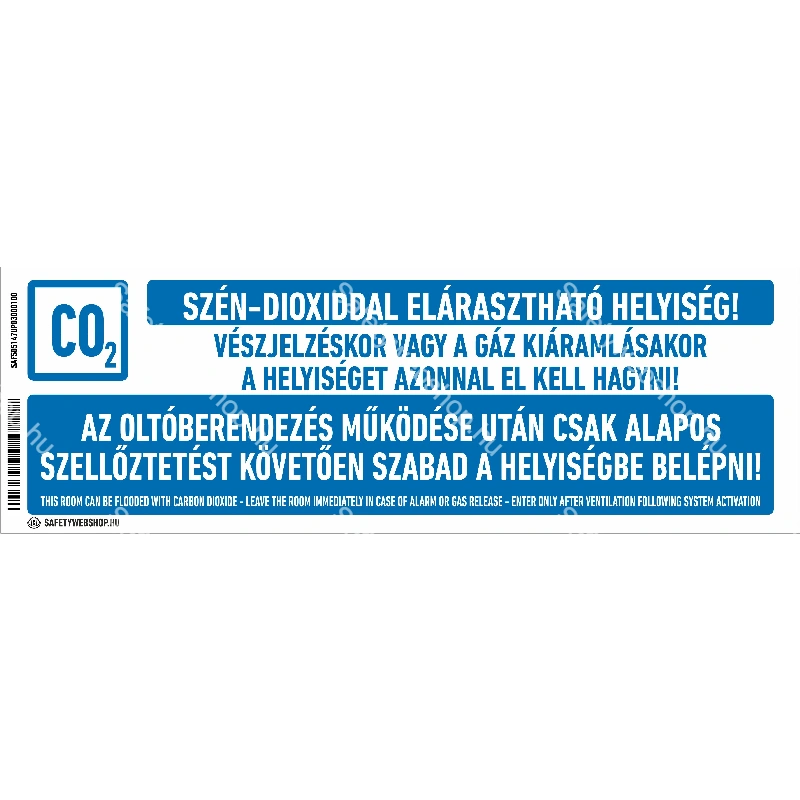 Szén-dioxiddal elárasztható helyiség! Vészjelzéskor vagy a gáz kiáramlásakor… / Vinyl öntapadó matrica / 300 mm x 100 mm