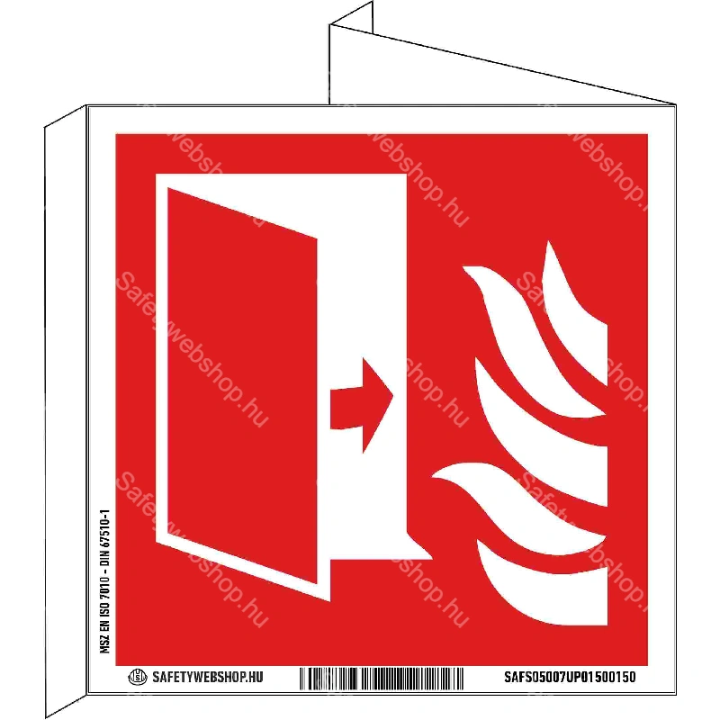 Tűzgátló ajtó utánvilágító tábla, faltól elálló, sátor alakú, kétoldalas (ISO 7010-F007 piktogram)