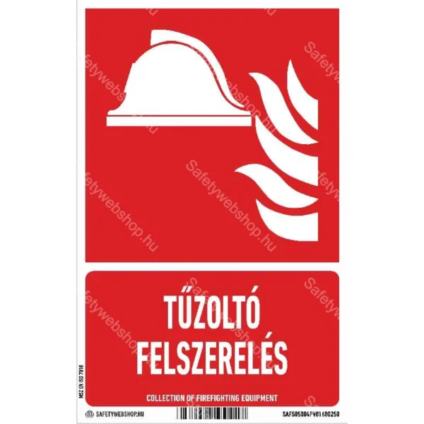 Tűzoltó felszerelés matrica / tábla (ISO 7010-F004 piktogram + felirat)